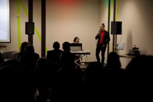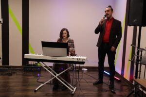 Warsztaty wokalne poprowadzili Marcin Borkowski – gitara i śpiew oraz Anka Banachomska – pianino, śpiew oraz animacje taneczne. Na gitarze elektrycznej akompaniował Siergiej Duplii. Było naprawdę gorąco !!!
