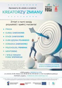Już 01 października 2025 r. ruszamy z drugą edycją projektu „Kreatorzy zmiany”, który realizujemy wspólnie z Fundacją „Dwa Skrzydła UA”.