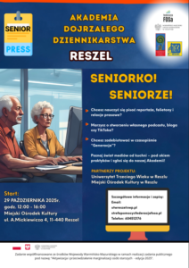 Federacja Organizacji Socjalnych Województwa Warmińsko-Mazurskiego FOSa we współpracy z Uniwersytetem Trzeciego Wieku w Reszlu oraz Miejskim Ośrodkiem Kultury w Reszlu zapraszają osoby 60+ do udziału w projekcie dziennikarskim „SeniorPress”.